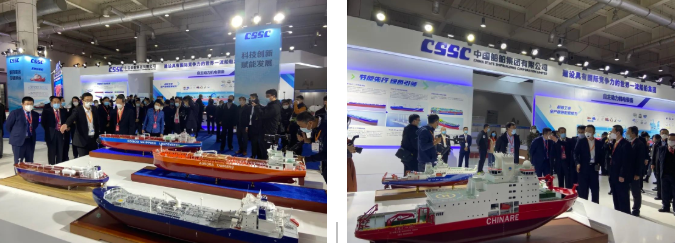 在創(chuàng)新船海裝備展區(qū),中國船舶集團集中展示了清潔能源船舶、系列LNG船、系列集裝箱船、系列油船、系列散貨船、系列科考船、系列特種船和未來船舶八個板塊。