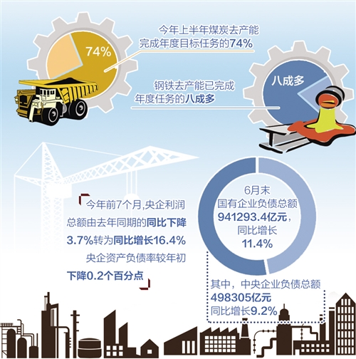 國務(wù)院常務(wù)會議披露的數(shù)據(jù)顯示,今年前7個月央企利潤總額由去年同期的同比下降3.7%轉(zhuǎn)為同比增長16.4%,央企資產(chǎn)負(fù)債率較年初下降0.2個百分點(diǎn)。