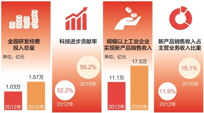 “創新驅動發展戰略大力實施,創新型國家建設成果豐碩,天宮、蛟龍、天眼、悟空、墨子、大飛機等重大科技成果相繼問世?!边^去5年間,創新驅動可謂最大發展亮點之一。