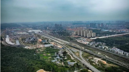 江西九江快速路跨廬山站轉體斜拉橋開工建設圖