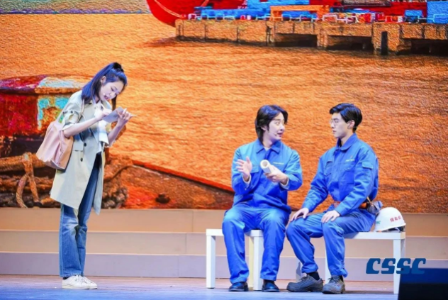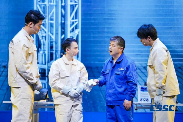 現(xiàn)場,來自中國船船集團江南造船(集團)有限責任公司、滬東中華造船(集團)有限公司、上海外高橋造船有限公司、中船動力(集團)有限公司和中國船舶集團公司第七〇二研究所的青年職工將真實工作案例與理論原文結(jié)合,將“發(fā)展新質(zhì)生產(chǎn)力”作為工作方向與指引,將他們的造船故事親身演繹。故事從《船舶青年說》起航,共講述了五大篇章,分別為江南造船如何延續(xù)百年初心、滬東中華造船LNG船毫厘鑄匠心、七〇二所從“蛟龍”號到“奮斗者”號將深潛進行到底、外高橋造船“愛達?魔都號”大型郵輪“4個120天”的極限挑戰(zhàn)、江南造船“鋼鐵心臟”工程師攻克大型作戰(zhàn)艦建造的不凡創(chuàng)新路,臺詞鏗鏘有力、情感真摯流淌,繪就了一幅精彩的中國船舶夢畫卷。