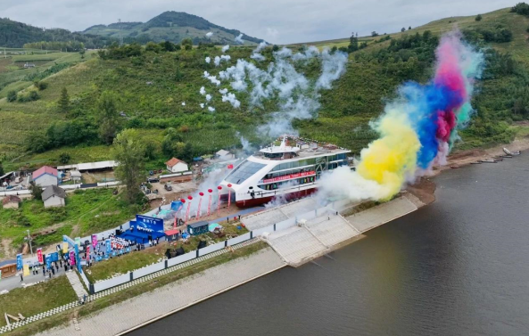 “天河一號”在東北地區內河游覽船領域創下了多個“之最”:投資金額最大、噸位最大、載客人數最多、推進功率最高、服務功能最齊全。作為吉林省首艘混合動力綠色新能源船舶,同時也是首艘超過500客位的大型游覽船,“天河一號”的亮相為松花江增添了一道亮麗的風景線。