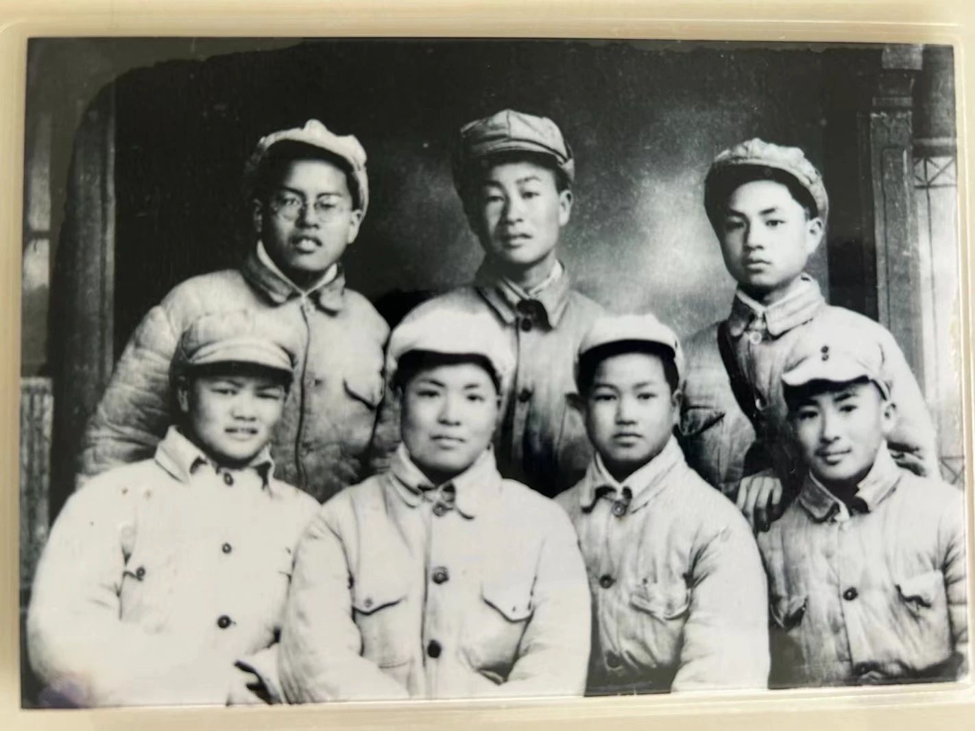 采訪(fǎng)中,劉暉小心地從文件袋中取出一張張老照片,向記者講述背后的故事。其中一張是1949年3月,劉暉與戰(zhàn)友們?cè)诓筷?duì)休整間隙拍下的合影。她一直珍藏這張照片,畫(huà)面中,定格了他們青春年少、英姿颯爽、滿(mǎn)懷革命理想的模樣。