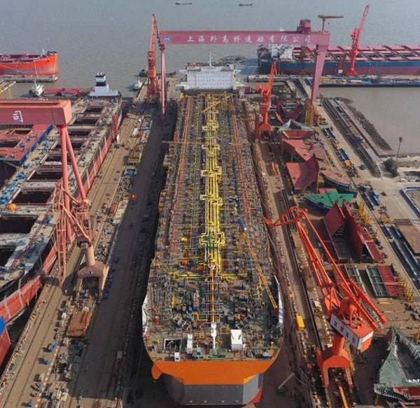 ????3月7日,中國船舶集團所屬外高橋造船建造的一艘海上浮式生產儲油船(FPSO)順利出塢。自2月10日復工復產以來,在不到一個月的時間里,外高橋造船已先后完成了一艘11.4萬噸阿芙拉型成品油輪、一艘21萬噸紐卡斯爾型散貨船和一艘18萬噸好望角型散貨船開工建造,兩艘21萬噸紐卡斯爾型散貨船和一艘18萬噸好望角型散貨船完成試航,一座JU2000E型海上自升式鉆井平臺交付,一艘平臺供應船(PSV)完工簽字,兩艘15.6萬噸蘇伊士型原油輪建造合同簽署等生產節點。