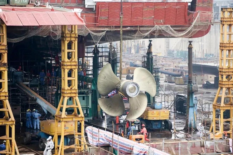 ????廣船國(guó)際自2月10日起復(fù)工復(fù)產(chǎn),其中阿爾及利亞客滾船建造是廣船國(guó)際重點(diǎn)工作之一。廣船國(guó)際先后克服勞動(dòng)力不足和資材供應(yīng)受阻等客觀困難,逆“疫”而上,確保該船順利出塢。