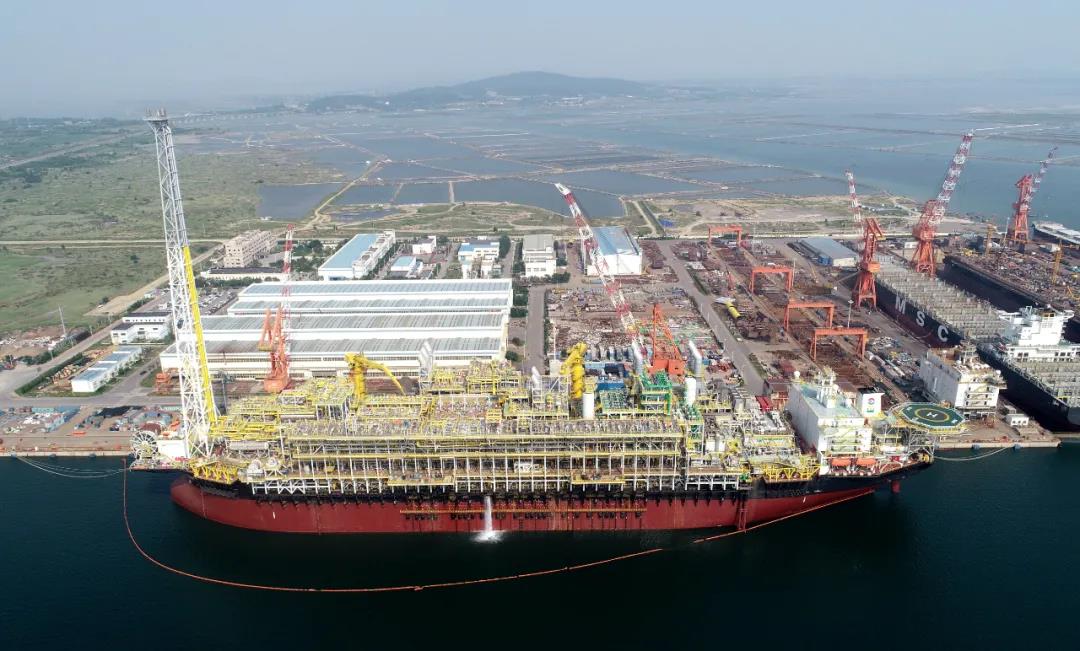 8月12日,中國船舶集團(tuán)旗下大船集團(tuán)舉行為新加坡MODEC公司改裝的Guanabara MV31 FPSO交船儀式。