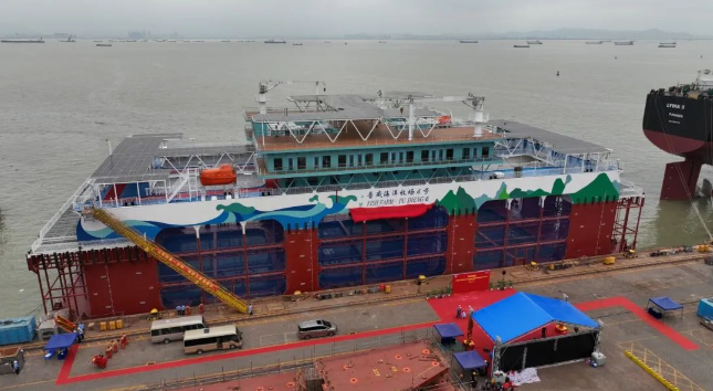 中國船舶集團旗下廣船國際建造的半潛式深遠海智能養(yǎng)殖旅游平臺“普盛海洋牧場6號”命名交付。