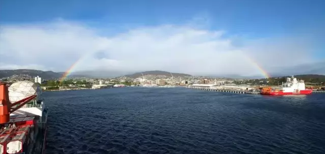 ????當地時間11月7日上午,搭載107名中國第36次南極考察隊員的“雪龍”號停靠澳大利亞霍巴特港口,與先行靠港的“雪龍2”號正式匯合。