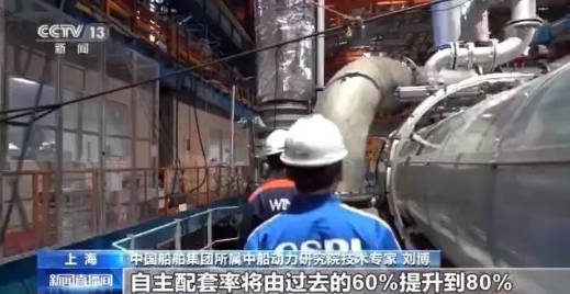 中國船舶集團旗下中船動力研究院技術專家 劉博:這臺CX40DF將匹配自主研制的增壓器、電控系統、油霧探測器,自主配套率將由過去的60%提升至80%。
