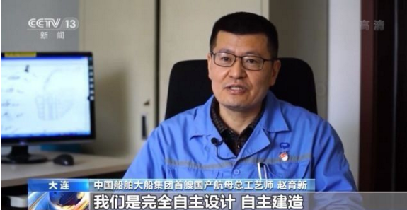 中國船舶大船集團(tuán)首艘國產(chǎn)航母總工藝師 趙育新:從第一次海試到最后交付,在這一年半的時間里沒有休息的,連軸(日以繼夜)地在這個工程上,一起拼搏。