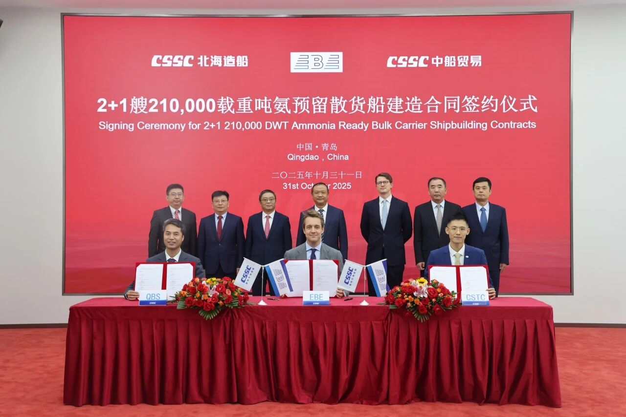 日前,中國船舶集團有限公司旗下北海造船聯(lián)合中船貿(mào)易,與比利時航運公司EBE成功簽署2+1艘21萬噸氨預留散貨船建造合同。此次合作是EBE公司首次在中國下單造船,體現(xiàn)了國際市場對北海造船建造實力的高度認可。